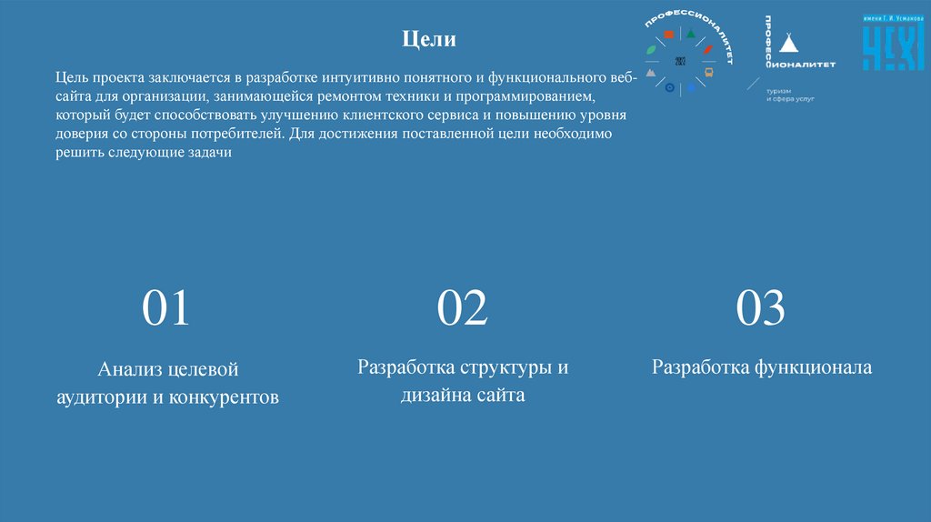 ЦелиЦель проекта заключается в разработке интуитивно понятного и функционального вебсайта для организации, занимающейся ремонтом техники и программированием,