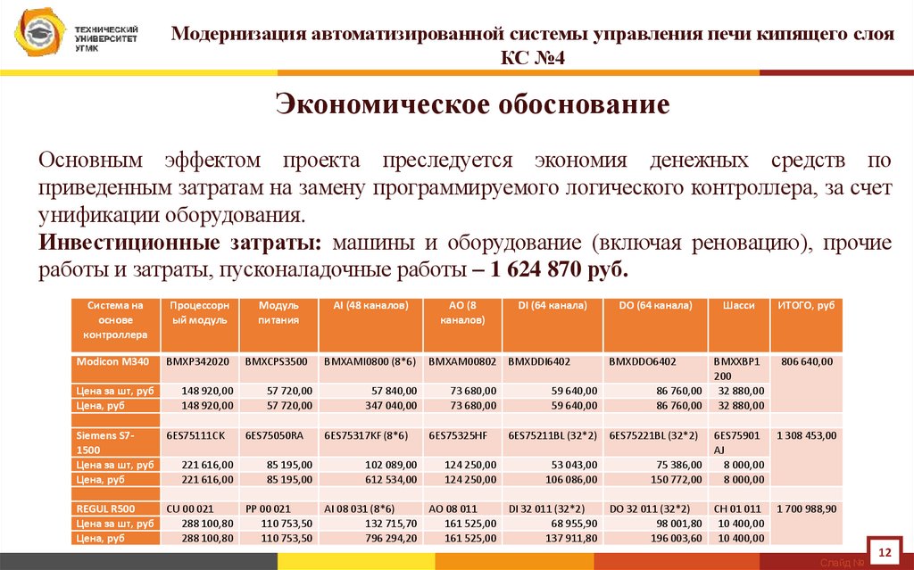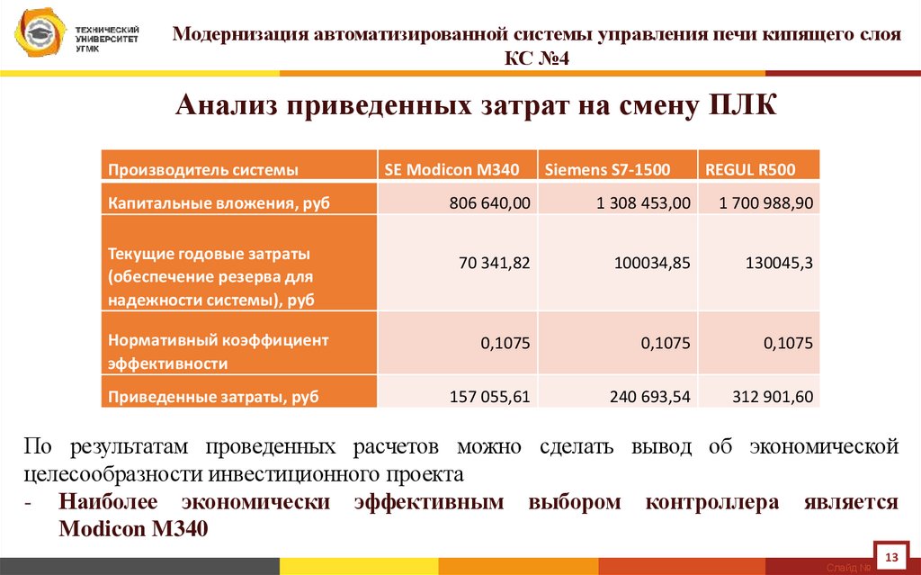 приведенным затратам на замену программируемого логического контроллера, за счет