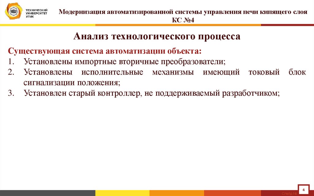 Модернизация автоматизированной системы управления печи кипящего слояКС №4