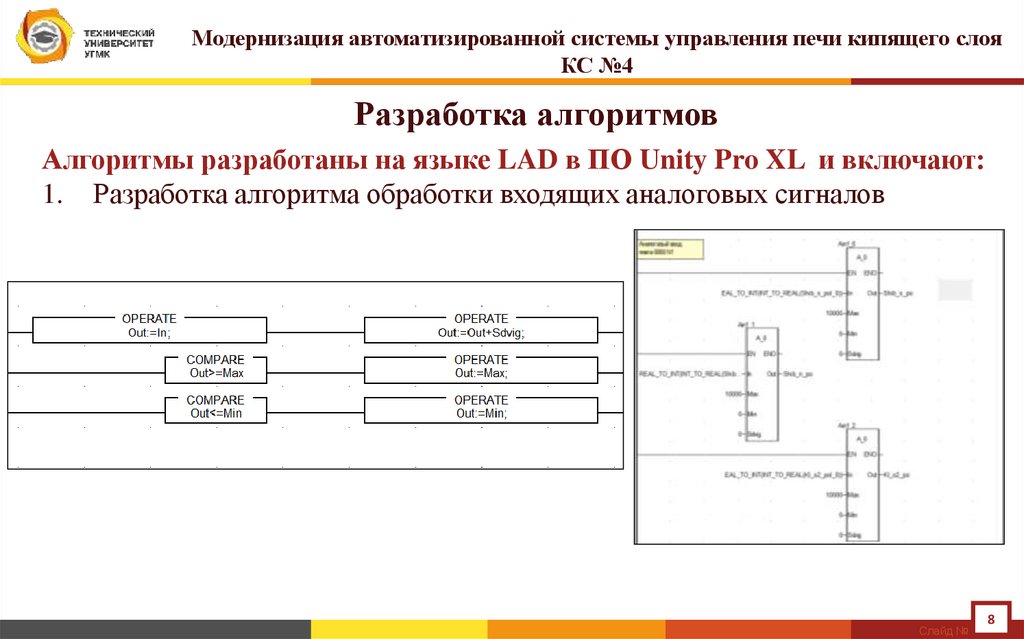 Алгоритмы разработаны на языке LAD в ПО Unity Pro XL и включают: