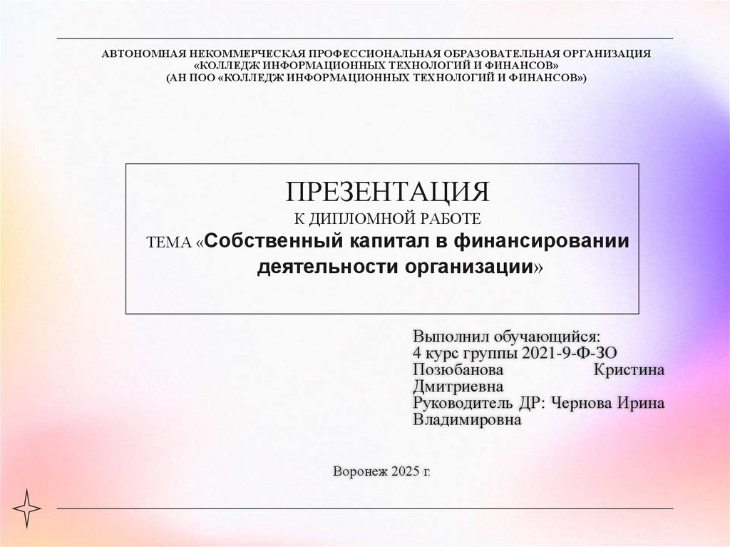 Актуальность темы дипломной работы заключается в том,что собственный капитал для каждой организации является
