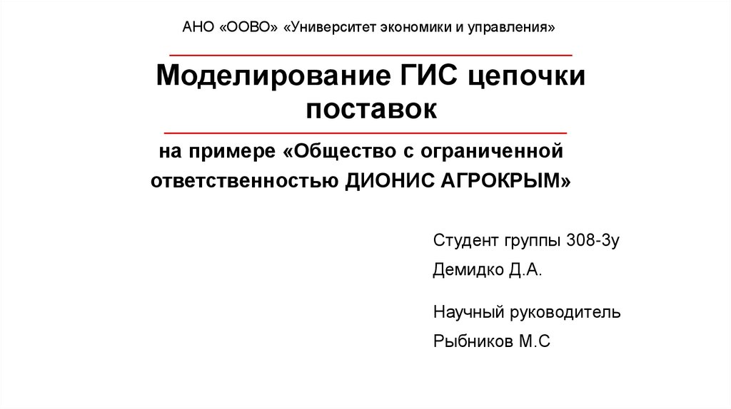АНО «ООВО» «Университет экономики и управления»Моделирование ГИС цепочки