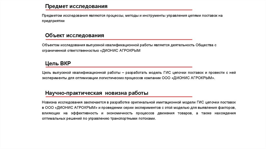 Предмет исследованияПредметом исследования являются процессы, методы и инструменты управления цепями поставок на