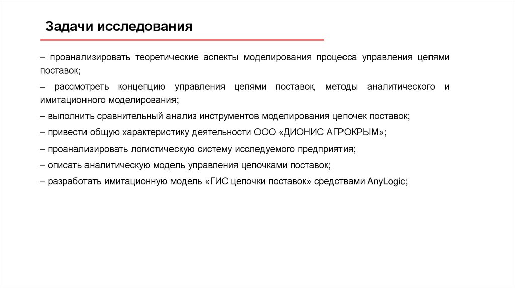 Задачи исследования– проанализировать теоретические аспекты моделирования процесса управления цепями