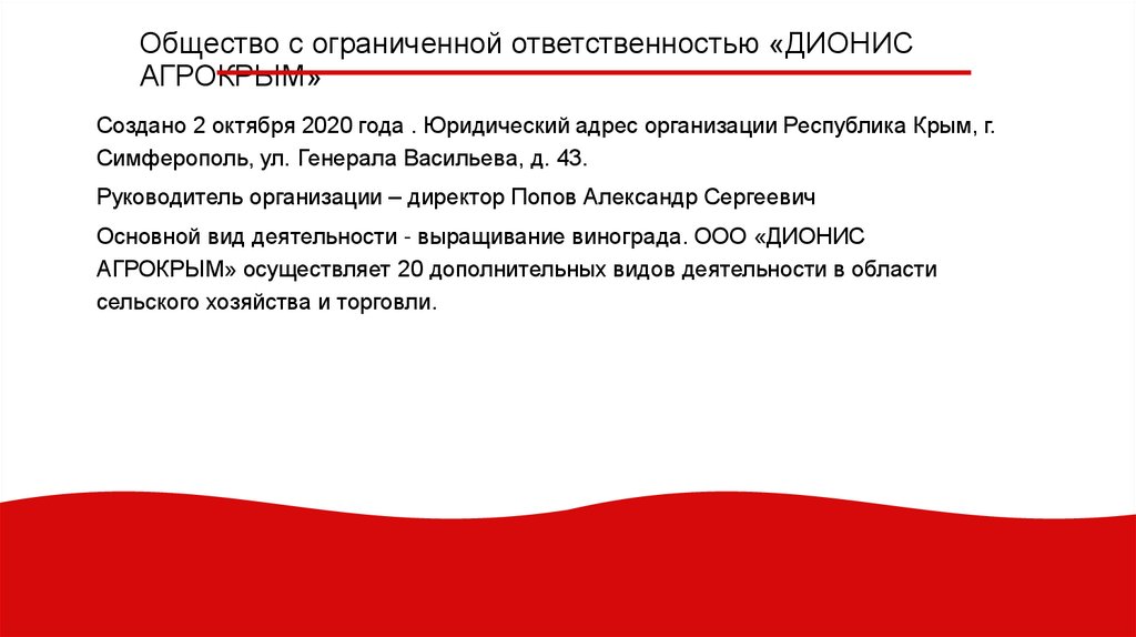 ограниченной ответственностью «ДИОНИС АГРОКРЫМ