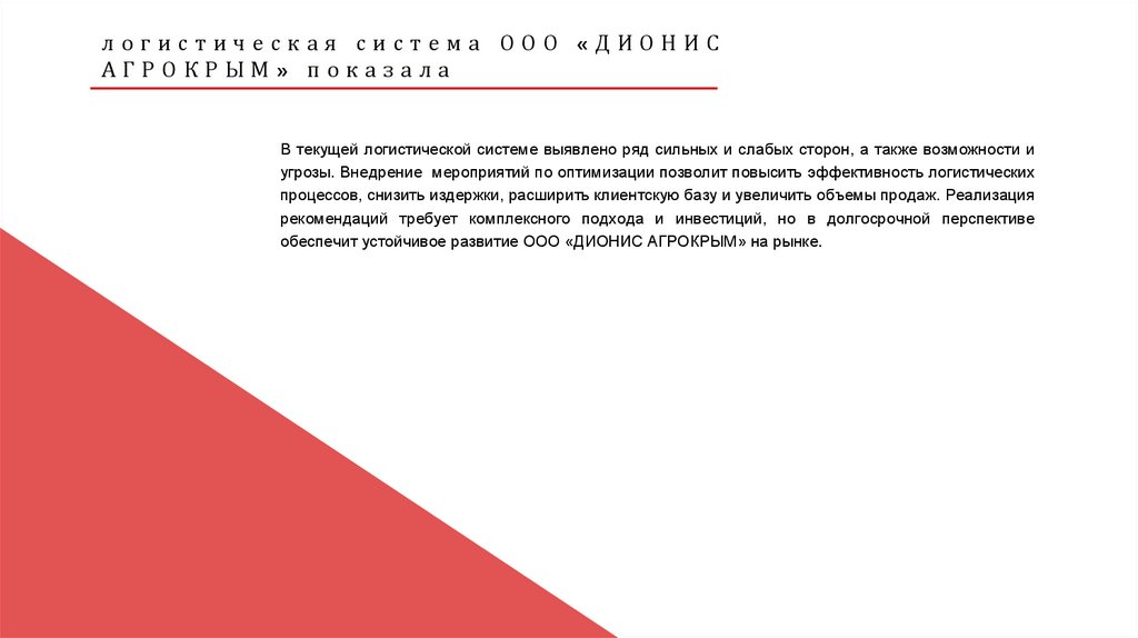 угрозы. Внедрение мероприятий по оптимизации позволит повысить эффективность логистических