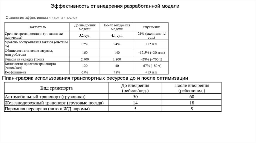 Эффективность от внедрения разработанной моделиСравнение эффективности «до» и «после»