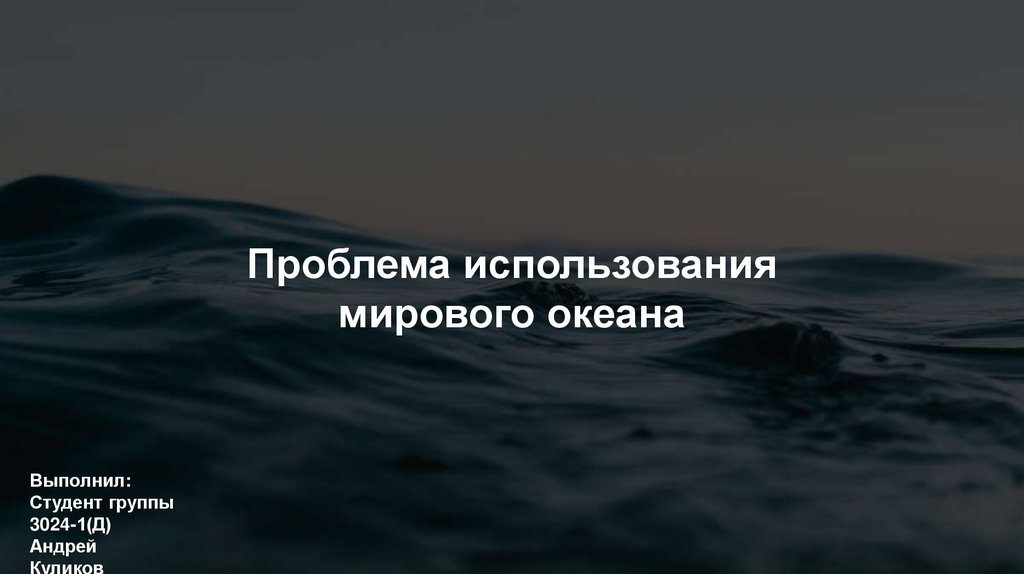 ЗаключениеПроблема использования мирового океана – глобальный вызов, требующих наших