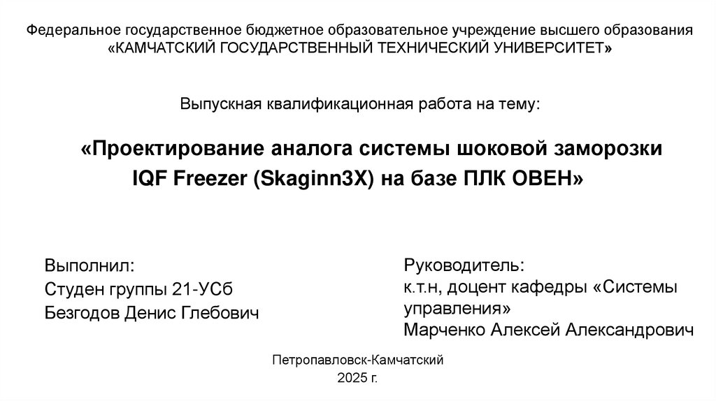 АКТУАЛЬНОСТЬРазработка аналога системы шоковой IQF Freezer с применением ПЛК ОВЕН