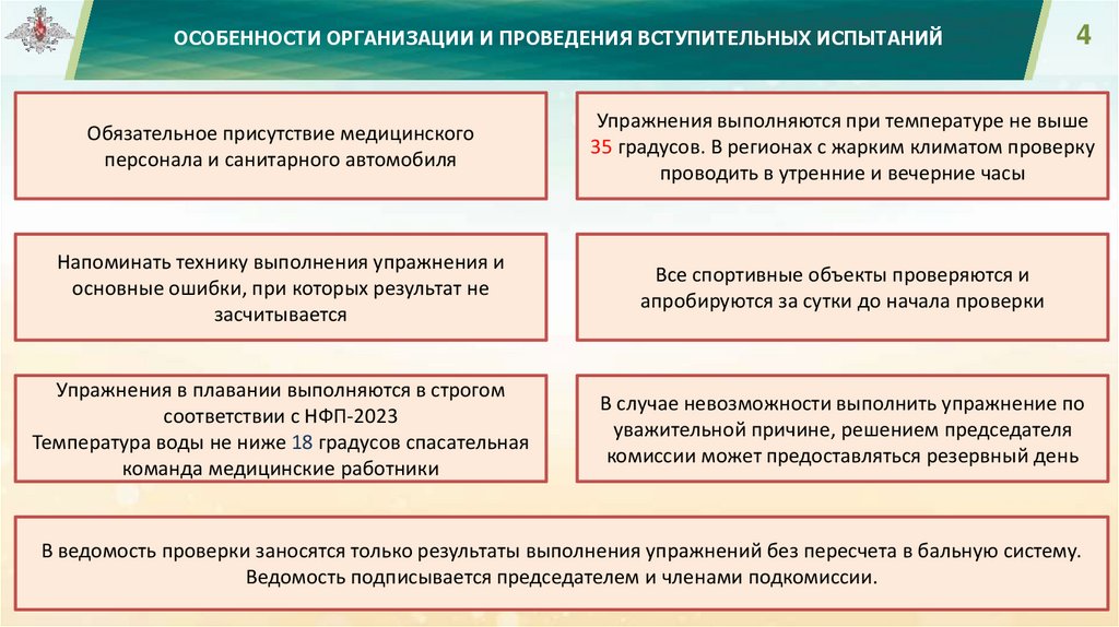 ОСОБЕННОСТИ ОРГАНИЗАЦИИ И ПРОВЕДЕНИЯ ВСТУПИТЕЛЬНЫХ ИСПЫТАНИЙ4