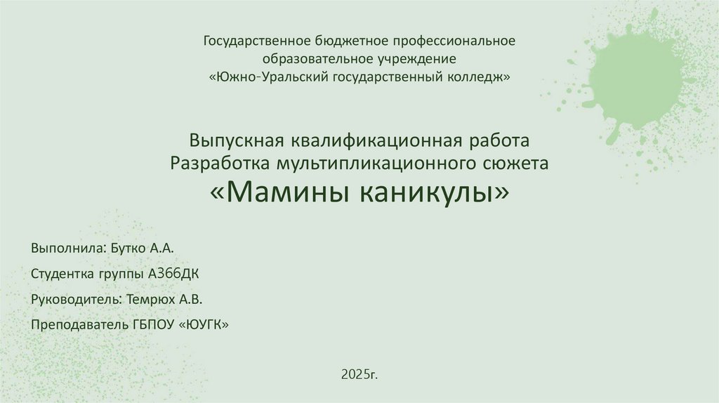 1. Выпускная квалификационная работа Разработка мультипликационного сюжета «Мамины каникулы»