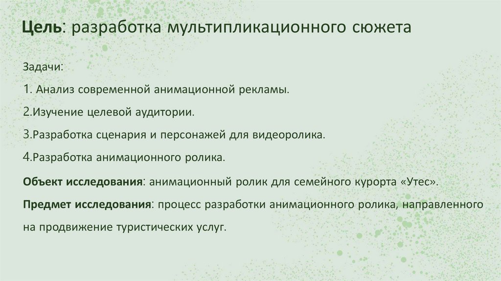 Цель: разработка мультипликационного сюжетаЗадачи: