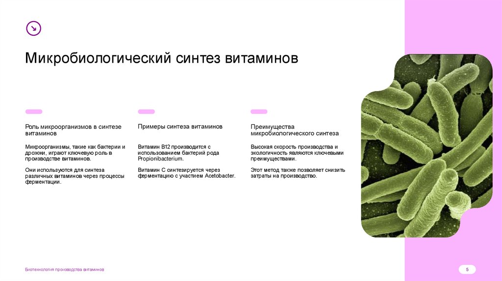 Микробиологический синтез витаминовРоль микроорганизмов в синтезе