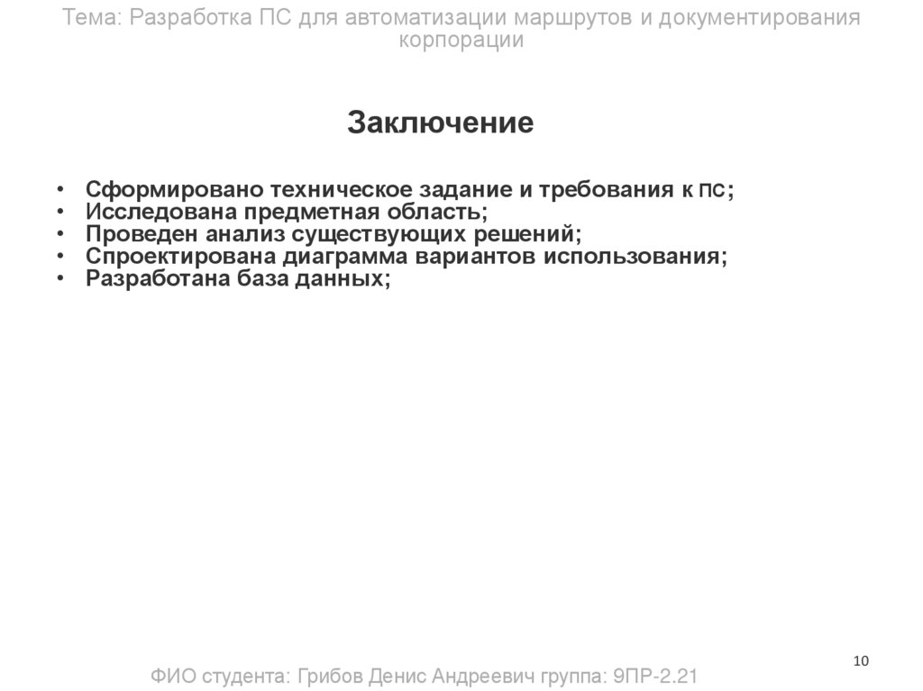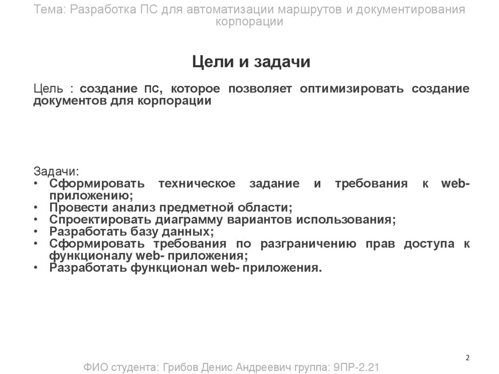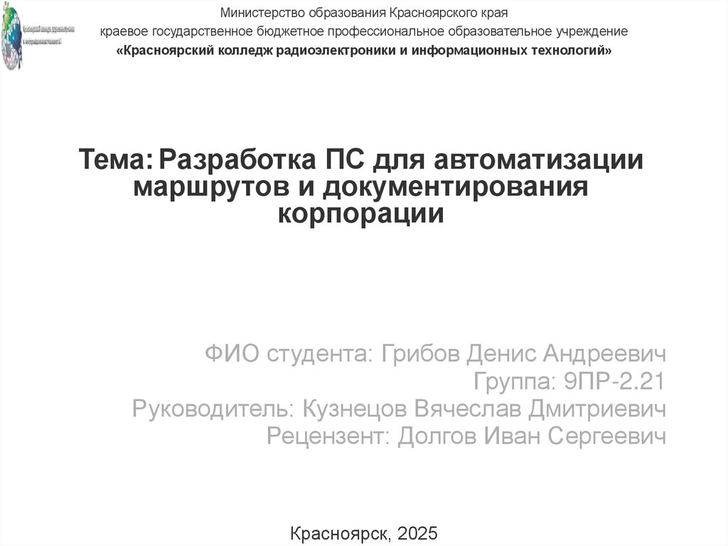 Тема: Разработка ПС для автоматизации маршрутов и документированиякорпорации