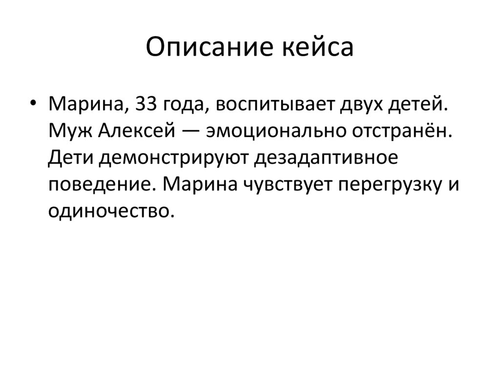 Описание кейса• Марина, 33 года, воспитывает двух детей.