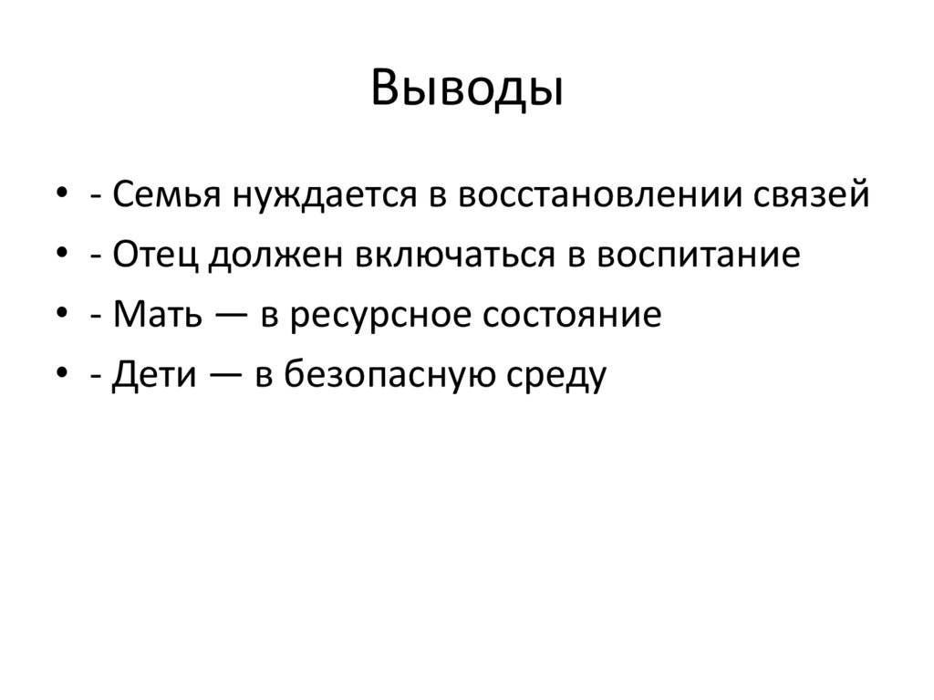 Выводы• - Семья нуждается в восстановлении связей