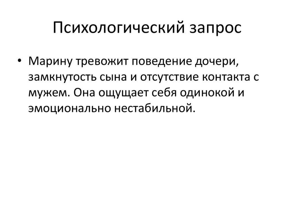 Психологический запрос• Марину тревожит поведение дочери,