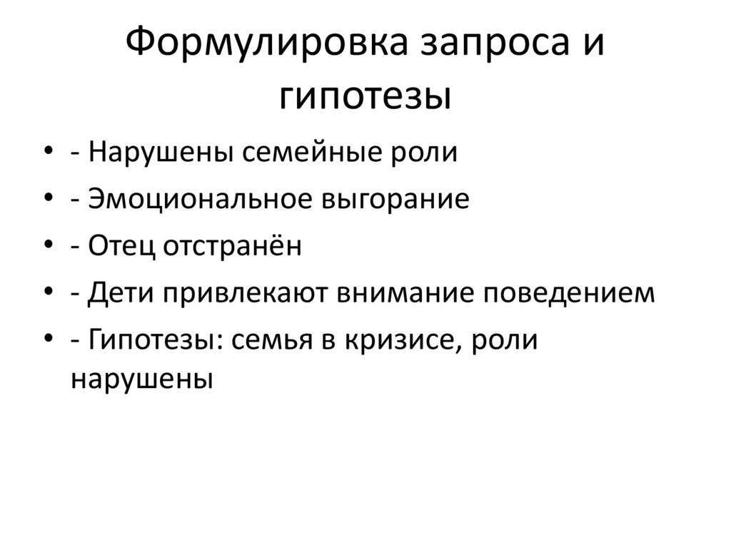 • - Гипотезы: семья в кризисе, роли