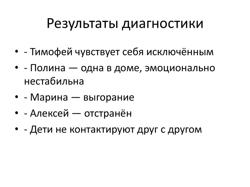 Результаты диагностики• - Тимофей чувствует себя исключённым