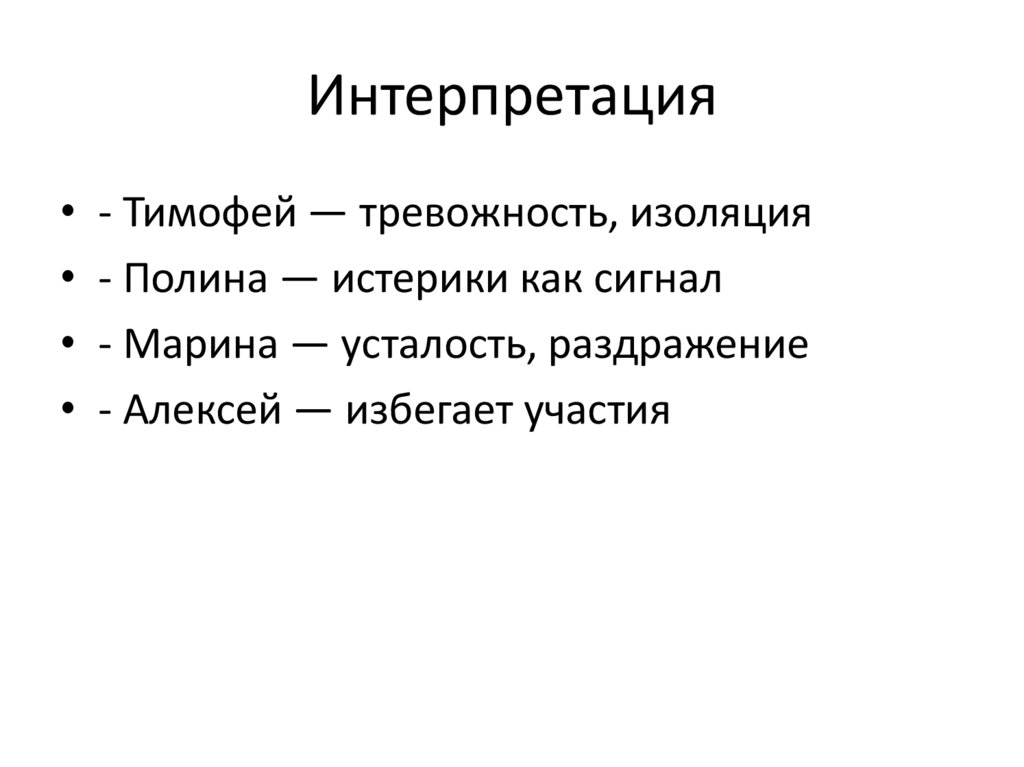 Интерпретация• - Тимофей — тревожность, изоляция