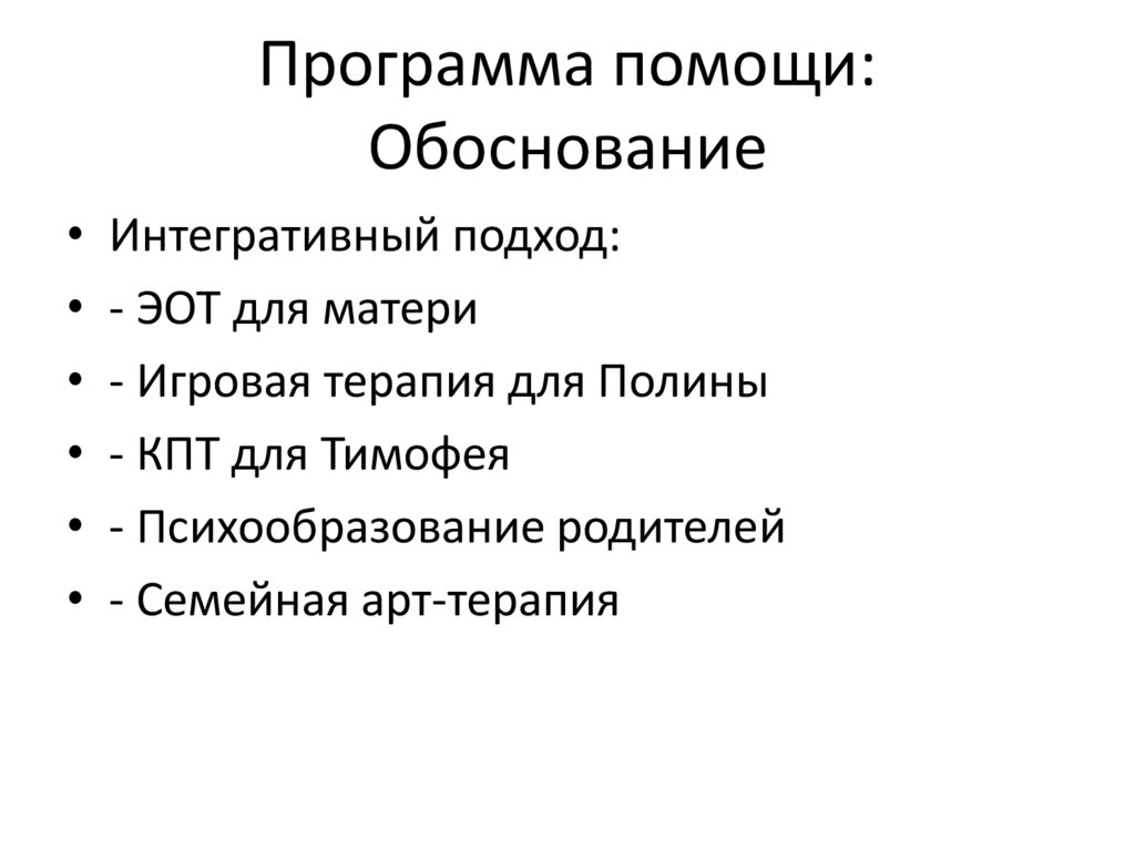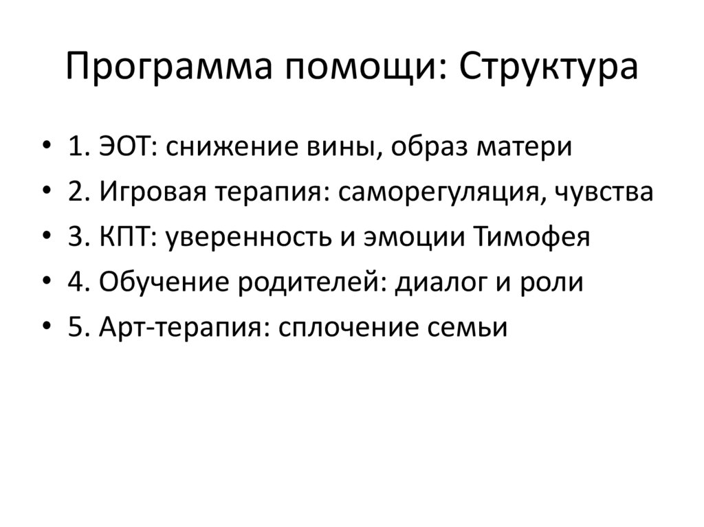 Программа помощи: Структура• 1. ЭОТ: снижение вины, образ матери