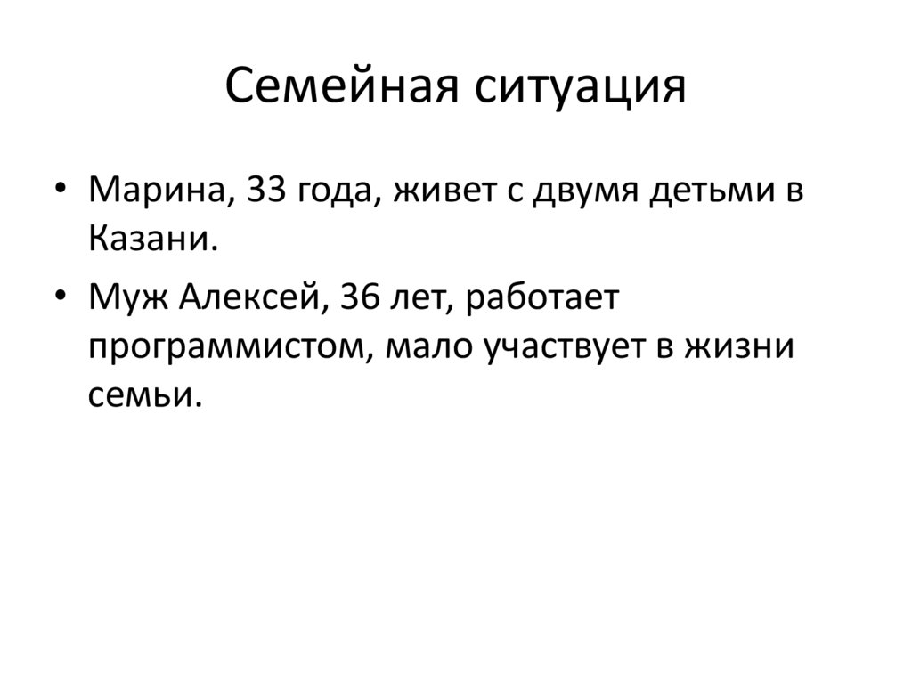 Семейная ситуация• Марина, 33 года, живет с двумя детьми в