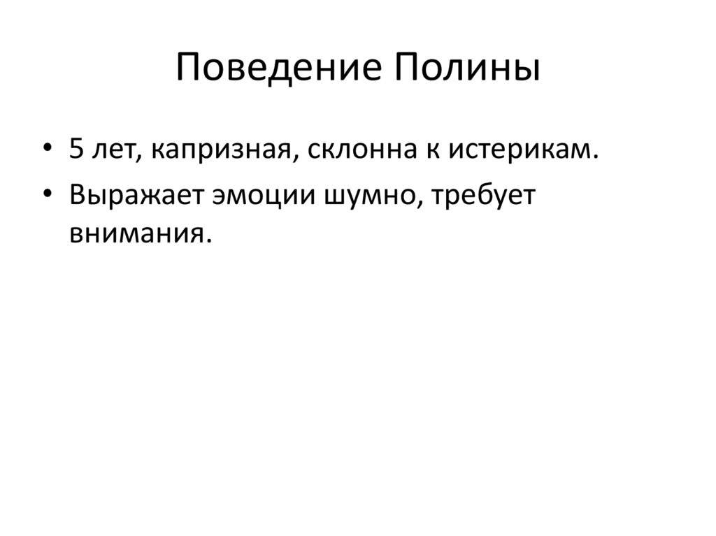 Поведение Полины• 5 лет, капризная, склонна к истерикам.
