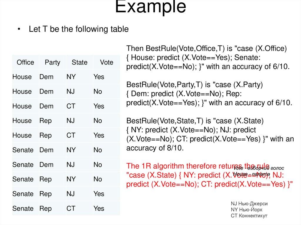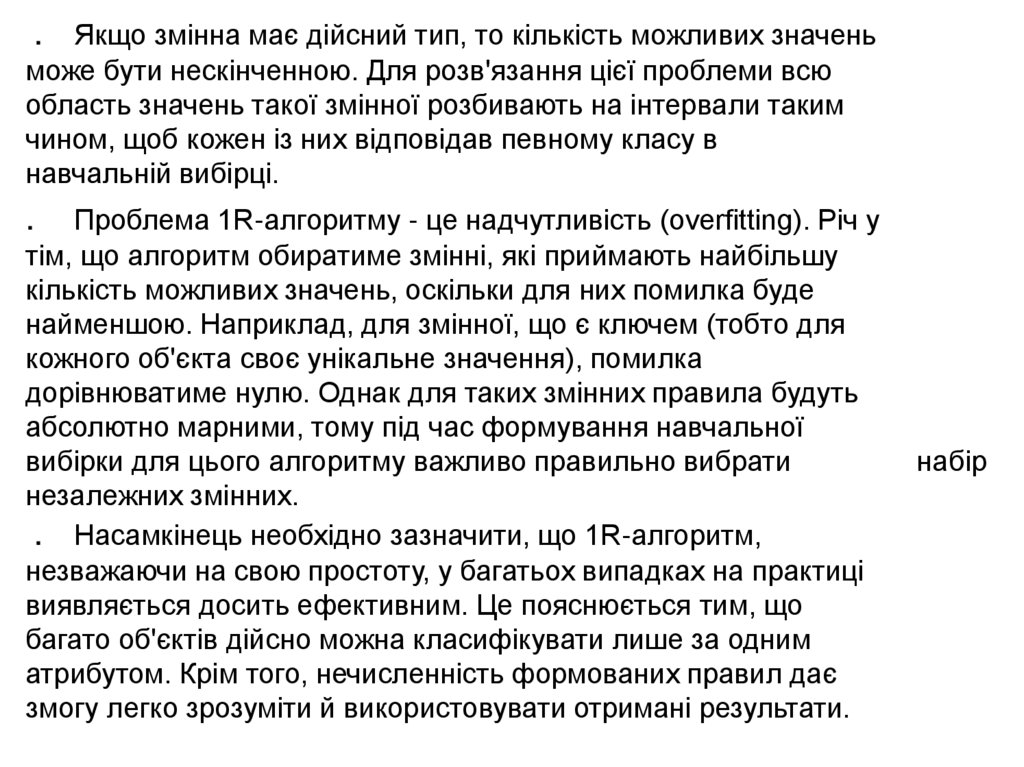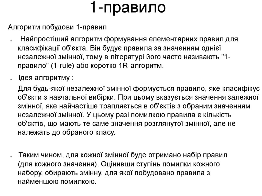 незалежної змінної, тому в літературі його часто називають "1правило" (1-rule) або коротко 1R-алгоритм.