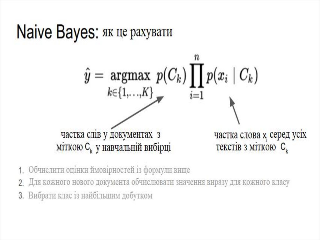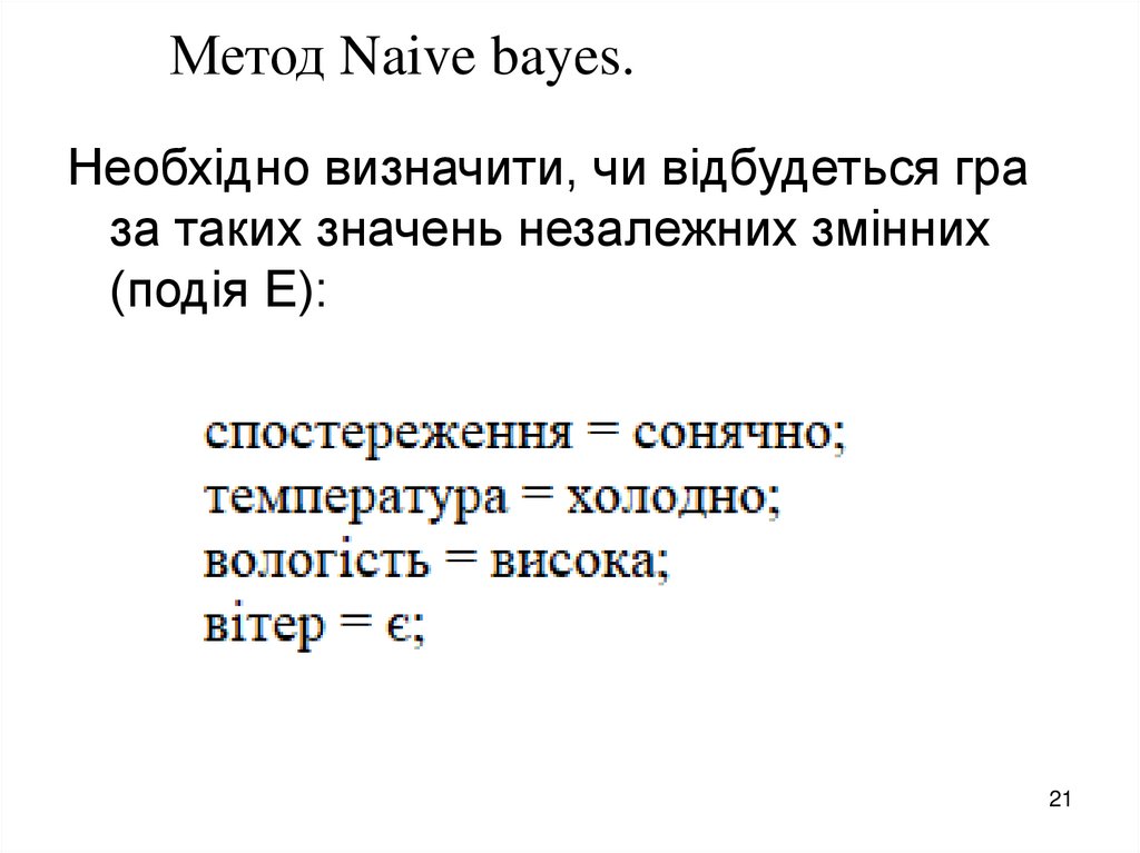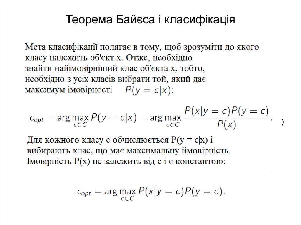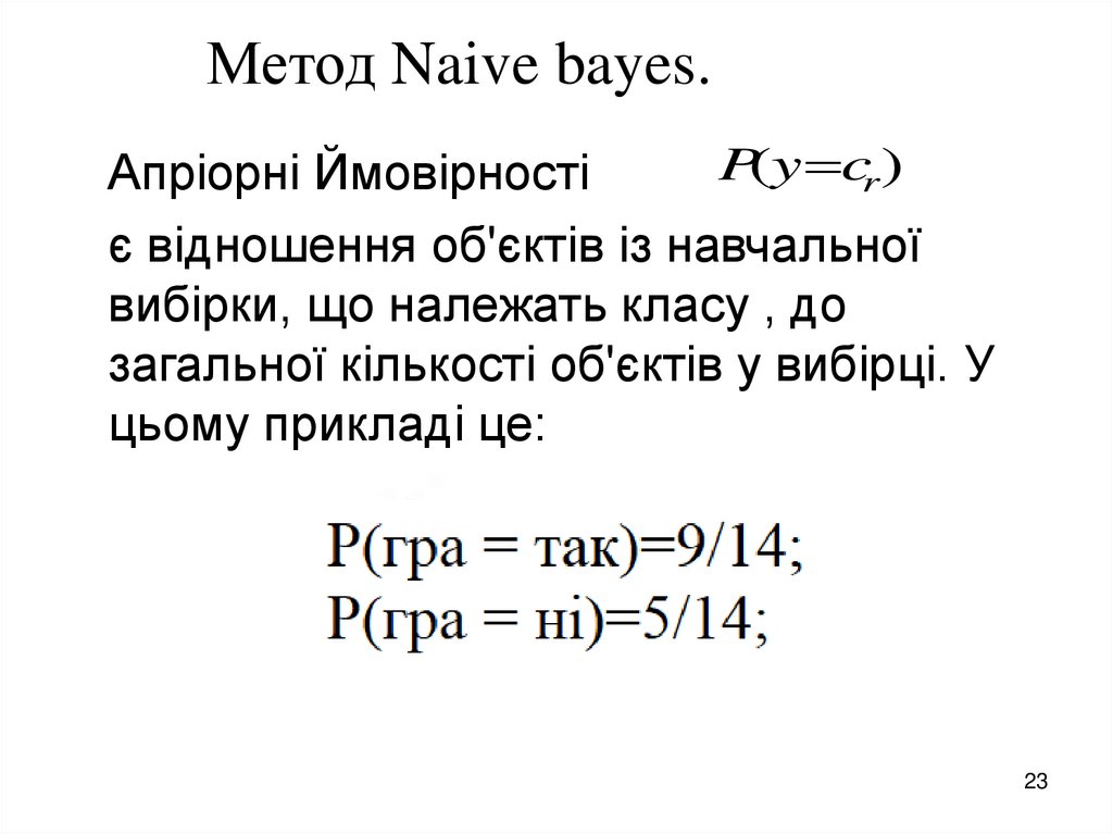 Метод Naive bayes.Підставляючи відповідні ймовірності,