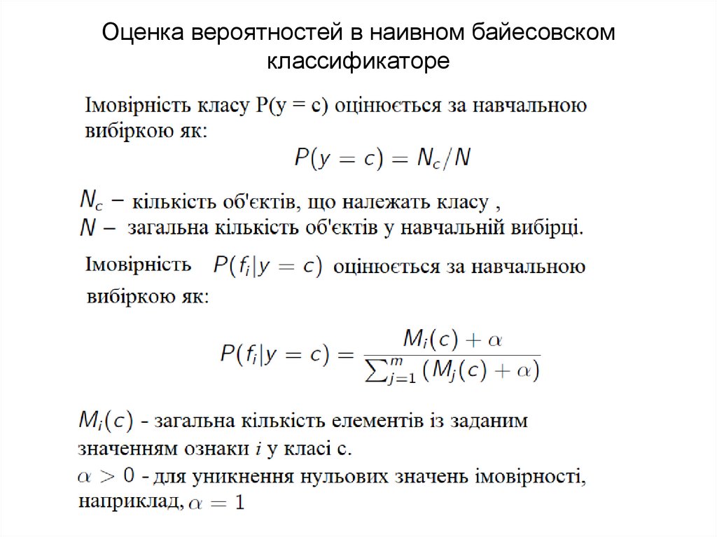 Оценка вероятностей в наивном байесовскомклассификаторе