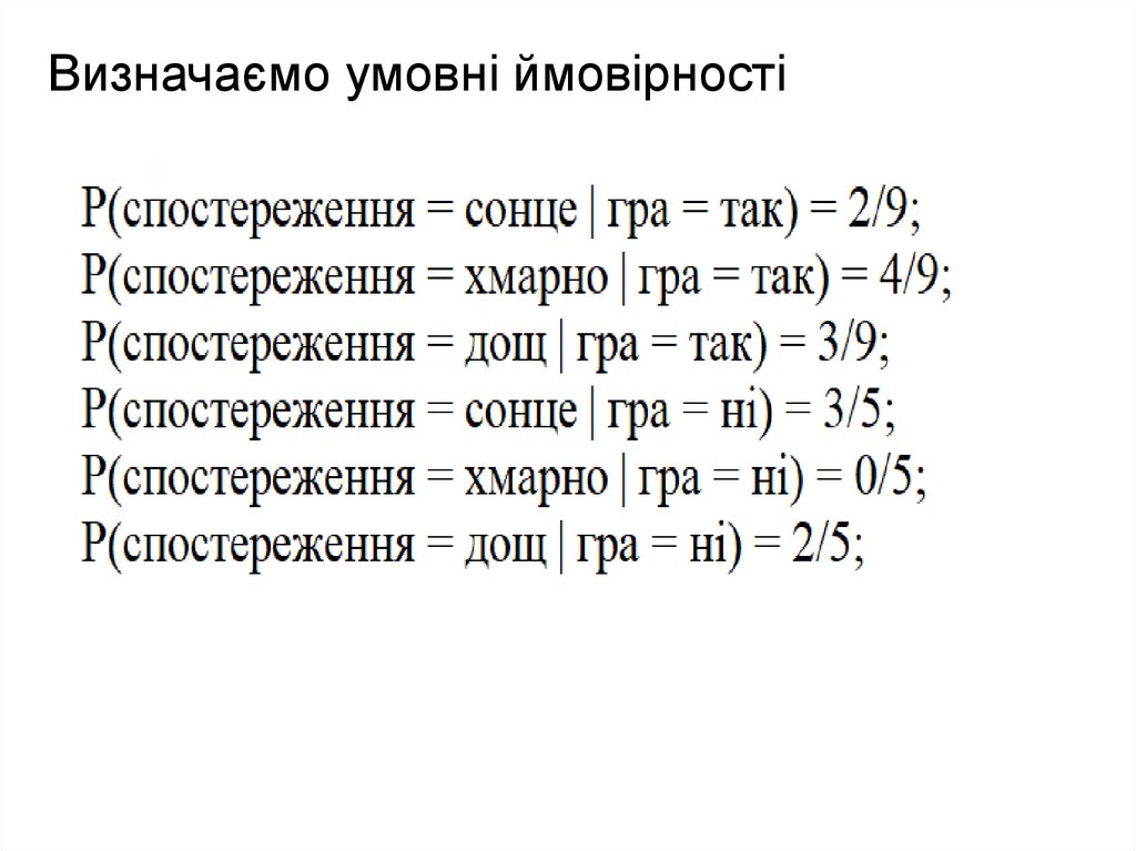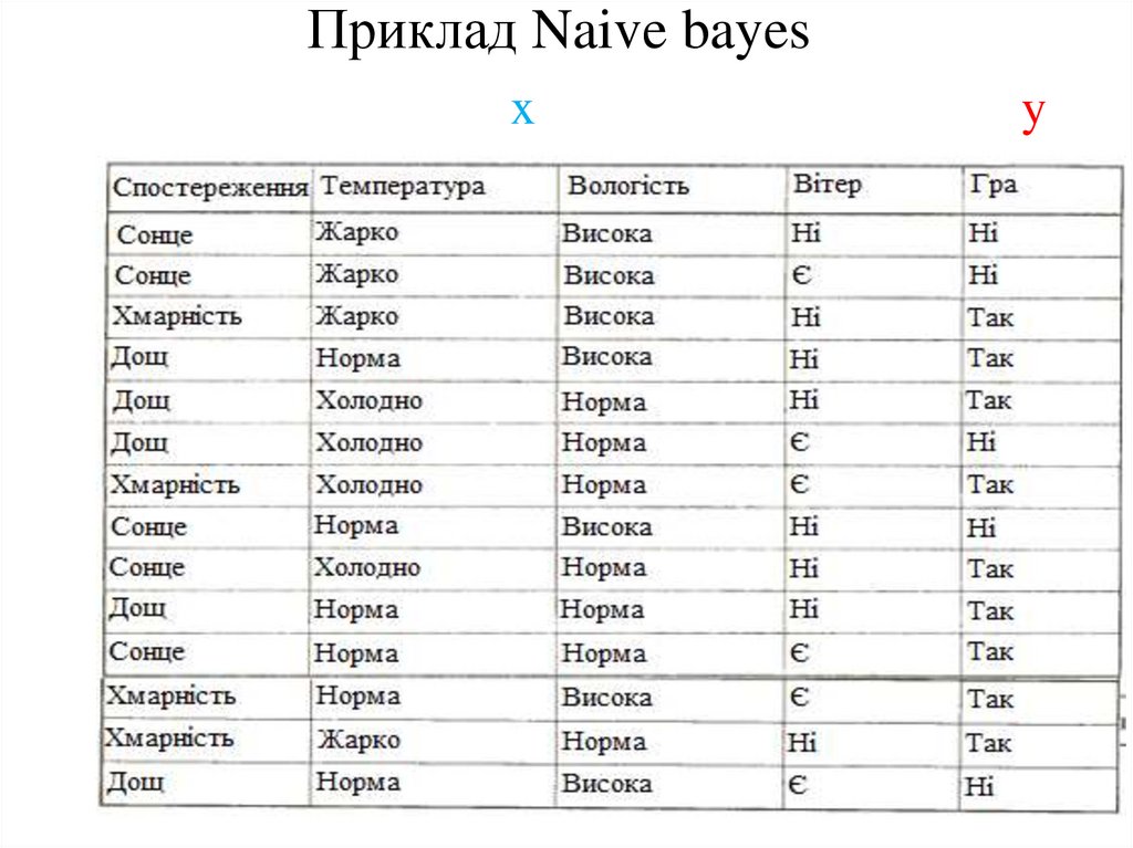 Метод Naive bayes.Необхідно визначити, чи відбудеться гра