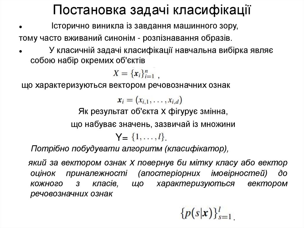Постановка задачі класифікаціїІсторично виникла із завдання машинного зору,