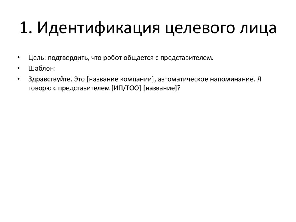 1. Идентификация целевого лицаЦель: подтвердить, что робот общается с представителем.