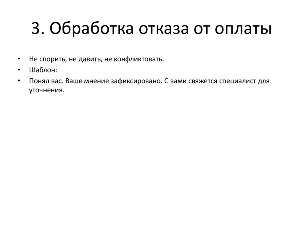 3. Обработка отказа от оплатыНе спорить, не давить, не конфликтовать.