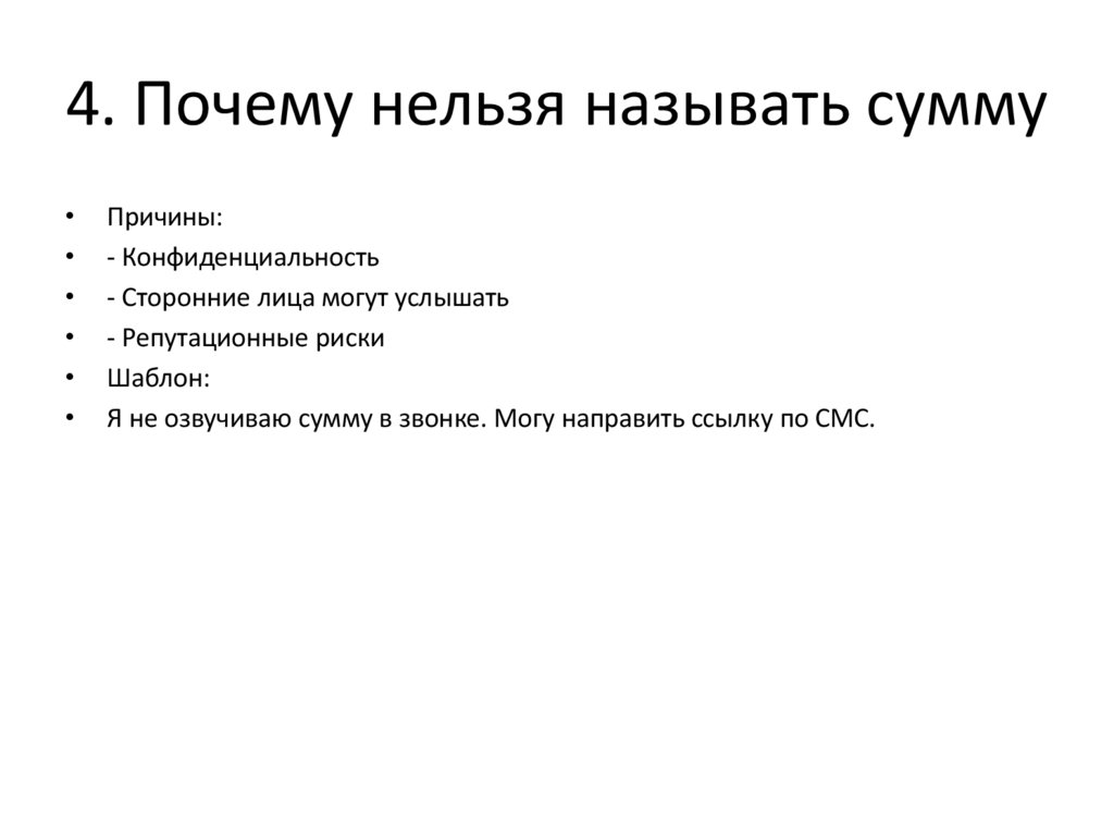 4. Почему нельзя называть суммуПричины: