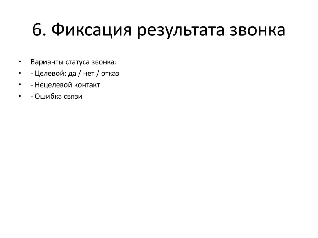 6. Фиксация результата звонкаВарианты статуса звонка:
