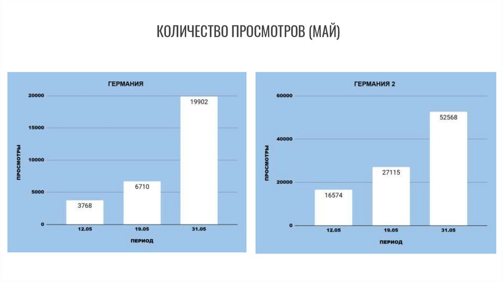 ОБЩЕЕ КОЛИЧЕСТВО ПРОСМОТРОВ ЗА МАЙ ПО НЕДЕЛЯМ5. Германия