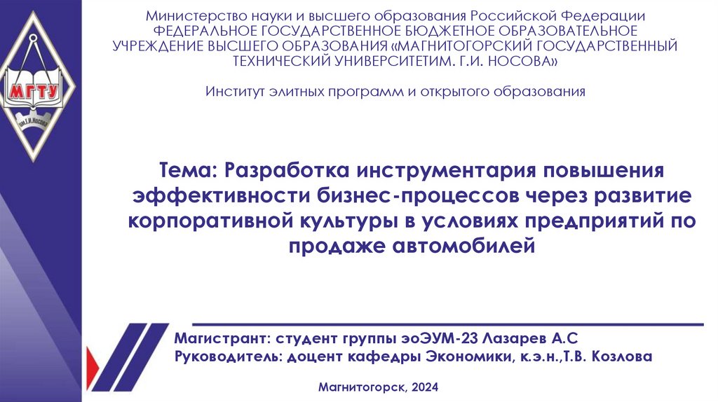 Магистрант: студент группы эоЭУМ-23 Лазарев А.С