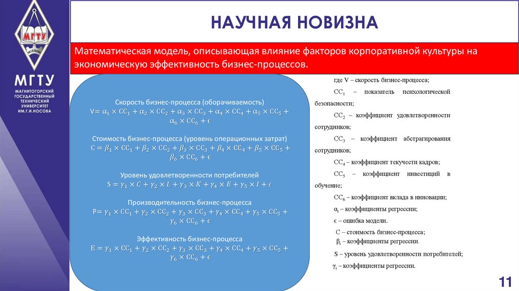 НАУЧНАЯ НОВИЗНАМатематическая модель, описывающая влияние факторов корпоративной культуры на