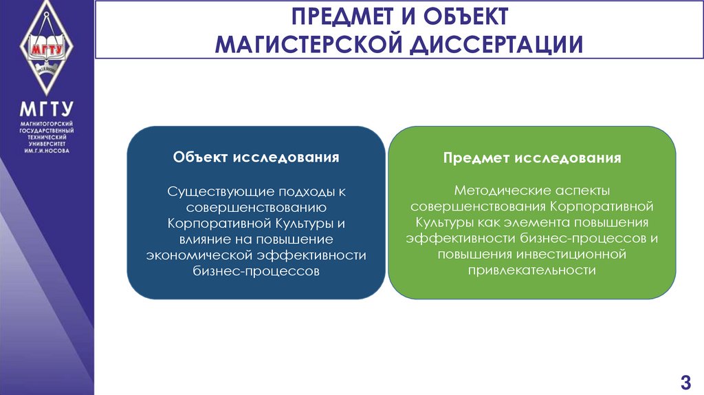 3. Предмет и объект магистерской диссертации