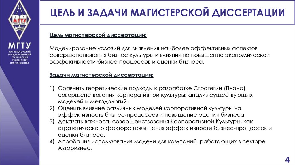 4. Цель и задачи магистерской диссертации