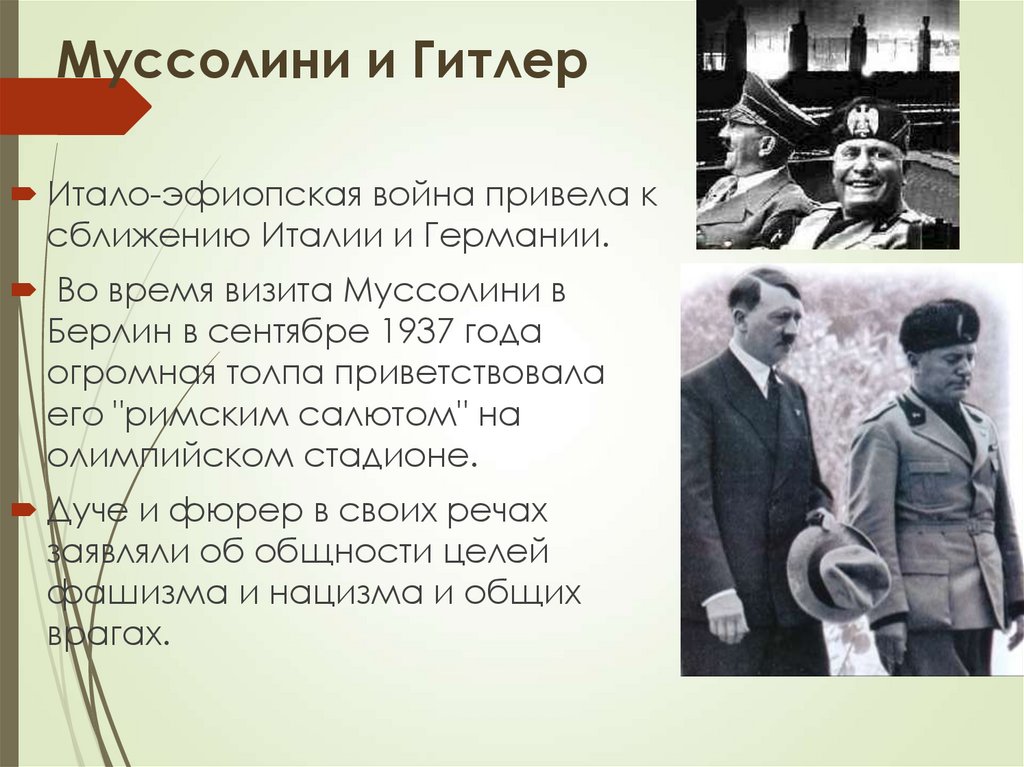 Итало-эфиопская война привела ксближению Италии и Германии.