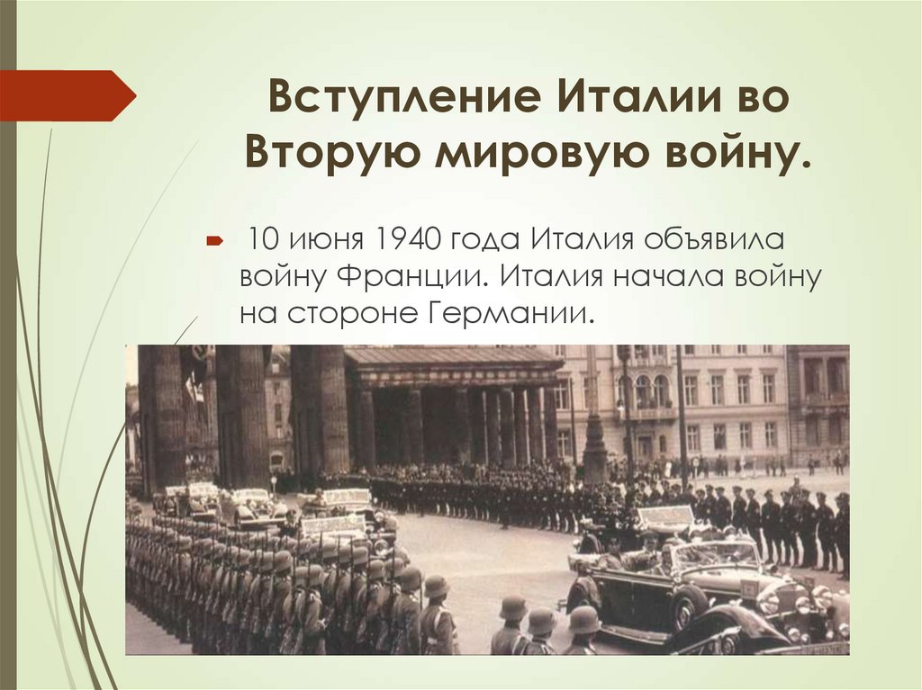 10 июня 1940 года Италия объявилавойну Франции. Италия начала войну