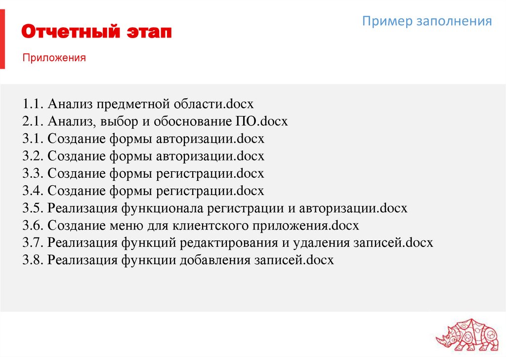 Отчетный этапПример заполнения