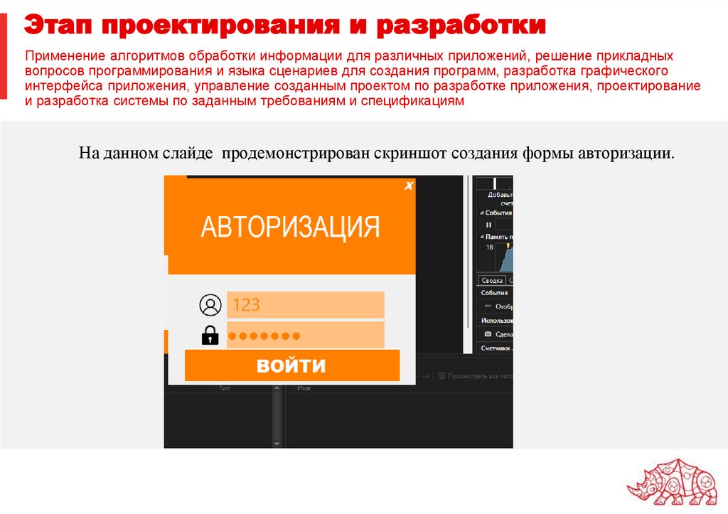 На данном слайде продемонстрирован скриншот создания формы авторизации.