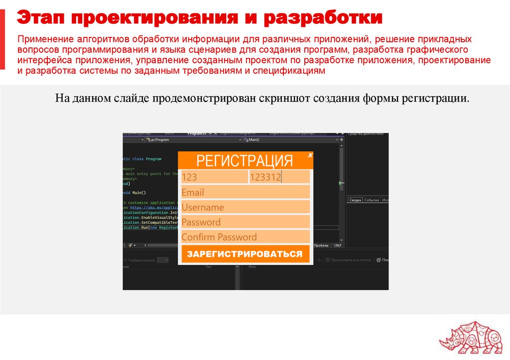 На данном слайде продемонстрирован скриншот создания формы регистрации.