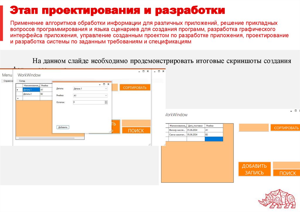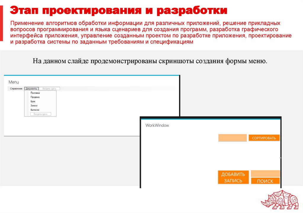 Этап проектирования и разработкиПрименение алгоритмов обработки информации для различных приложений, решение прикладных