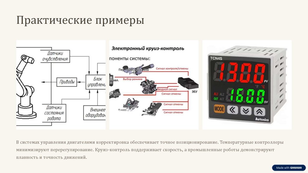 минимизируют перерегулирование. Круиз-контроль поддерживает скорость, а промышленные роботы демонстрируют