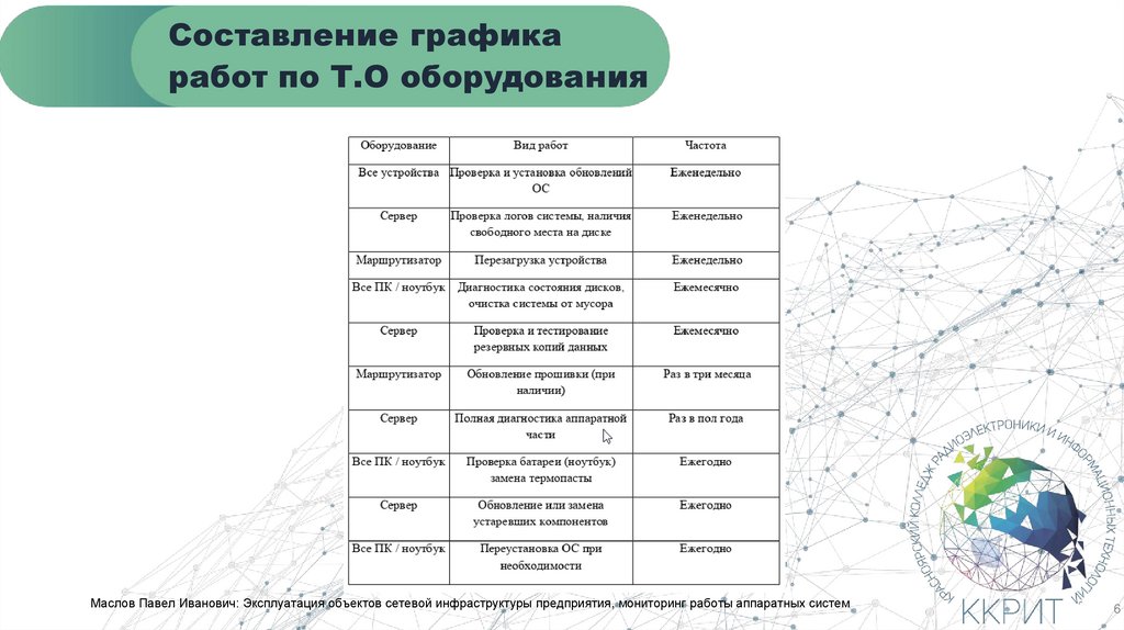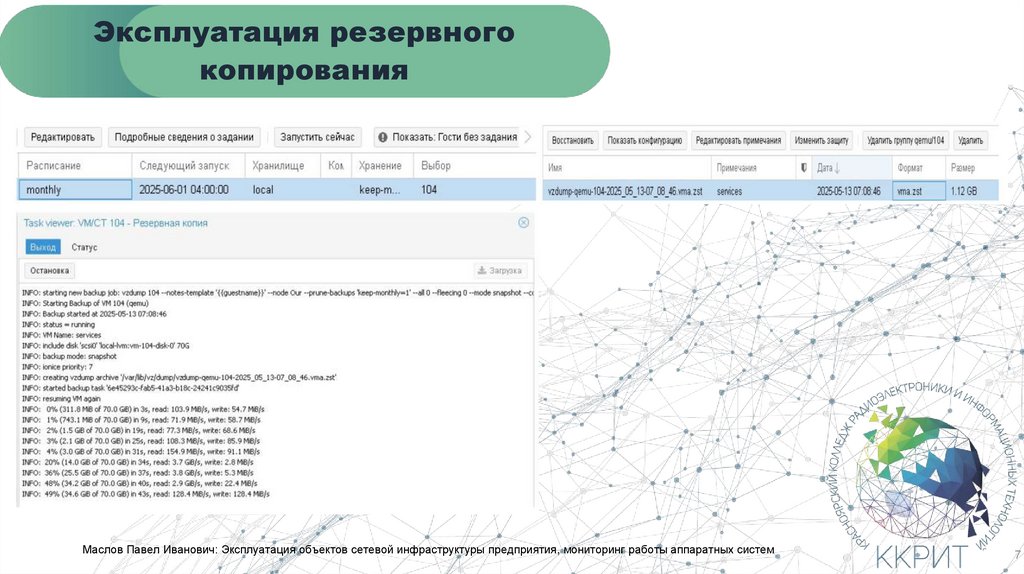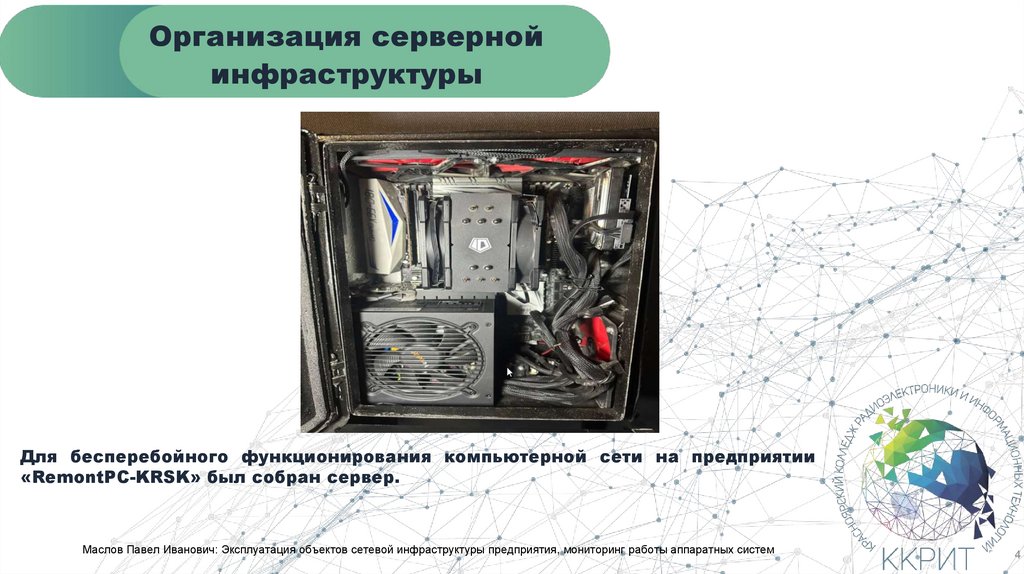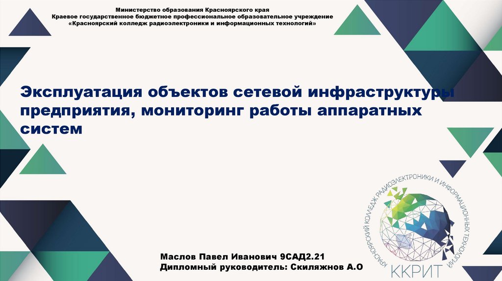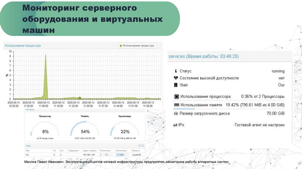 Маслов Павел Иванович: Эксплуатация объектов сетевой инфраструктуры предприятия, мониторинг работы аппаратных систем