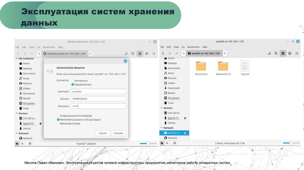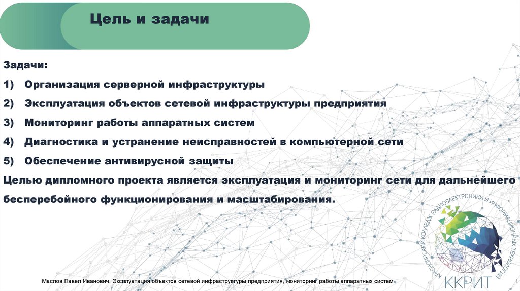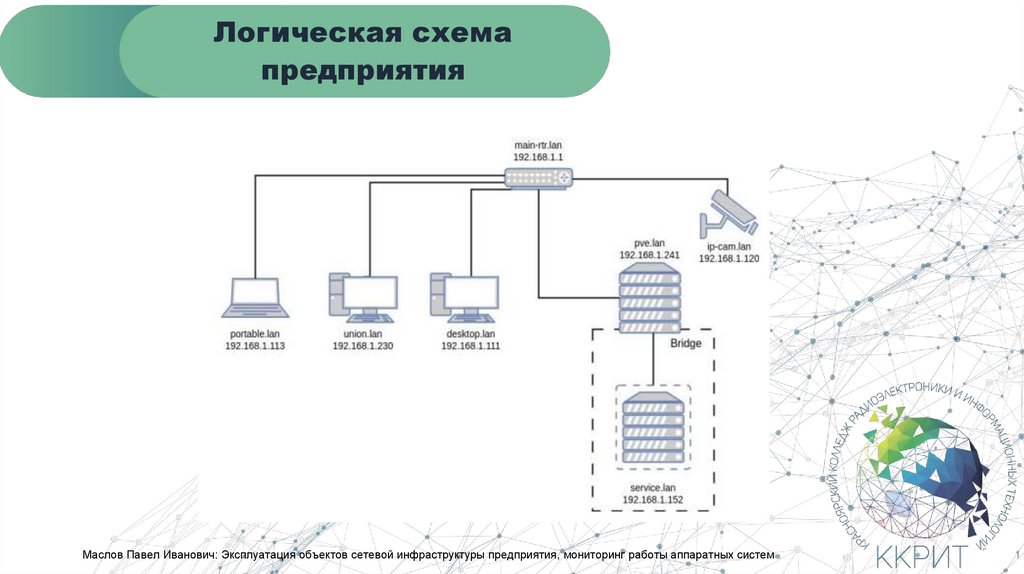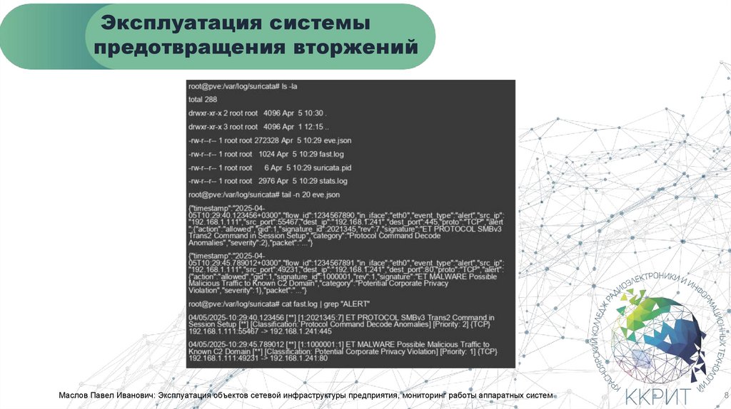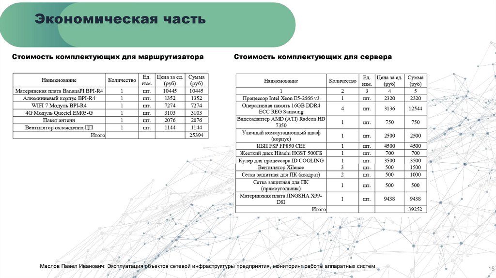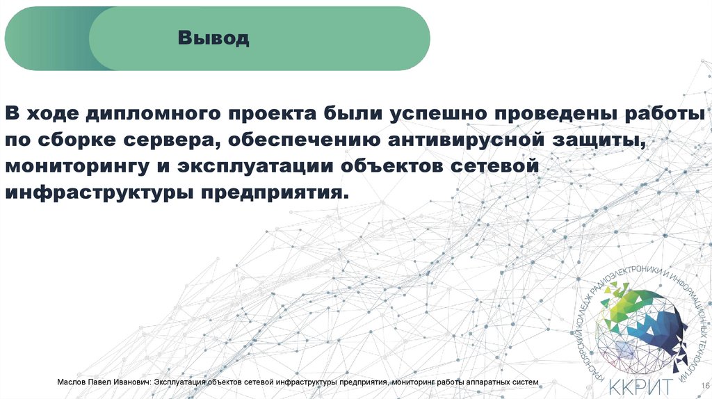 Маслов Павел Иванович: Эксплуатация объектов сетевой инфраструктуры предприятия, мониторинг работы аппаратных систем